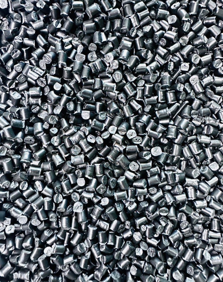 Las escamas limpias son fundidas, filtradas y extruidas para formar pellets homogéneos y consistentes.